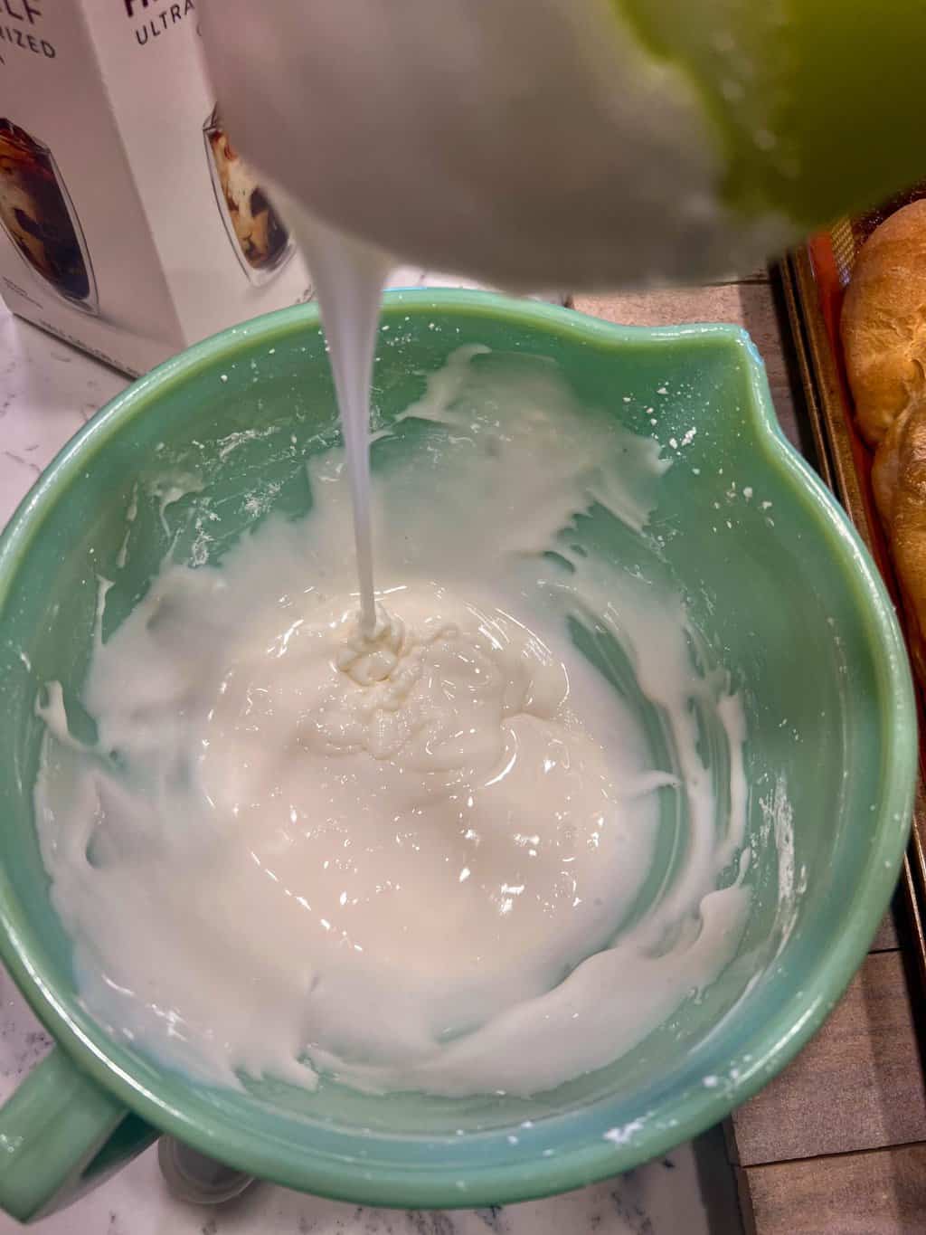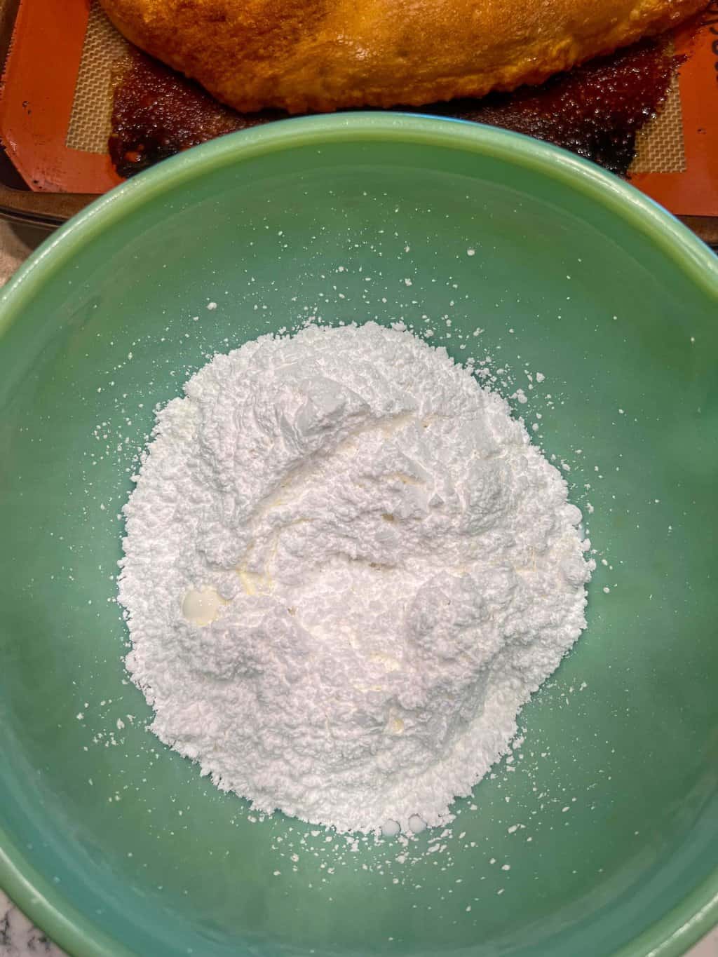 - Add all ingredients to a mixing bowl. Stir well. Icing should be thin enough to drizzle over the pastry,