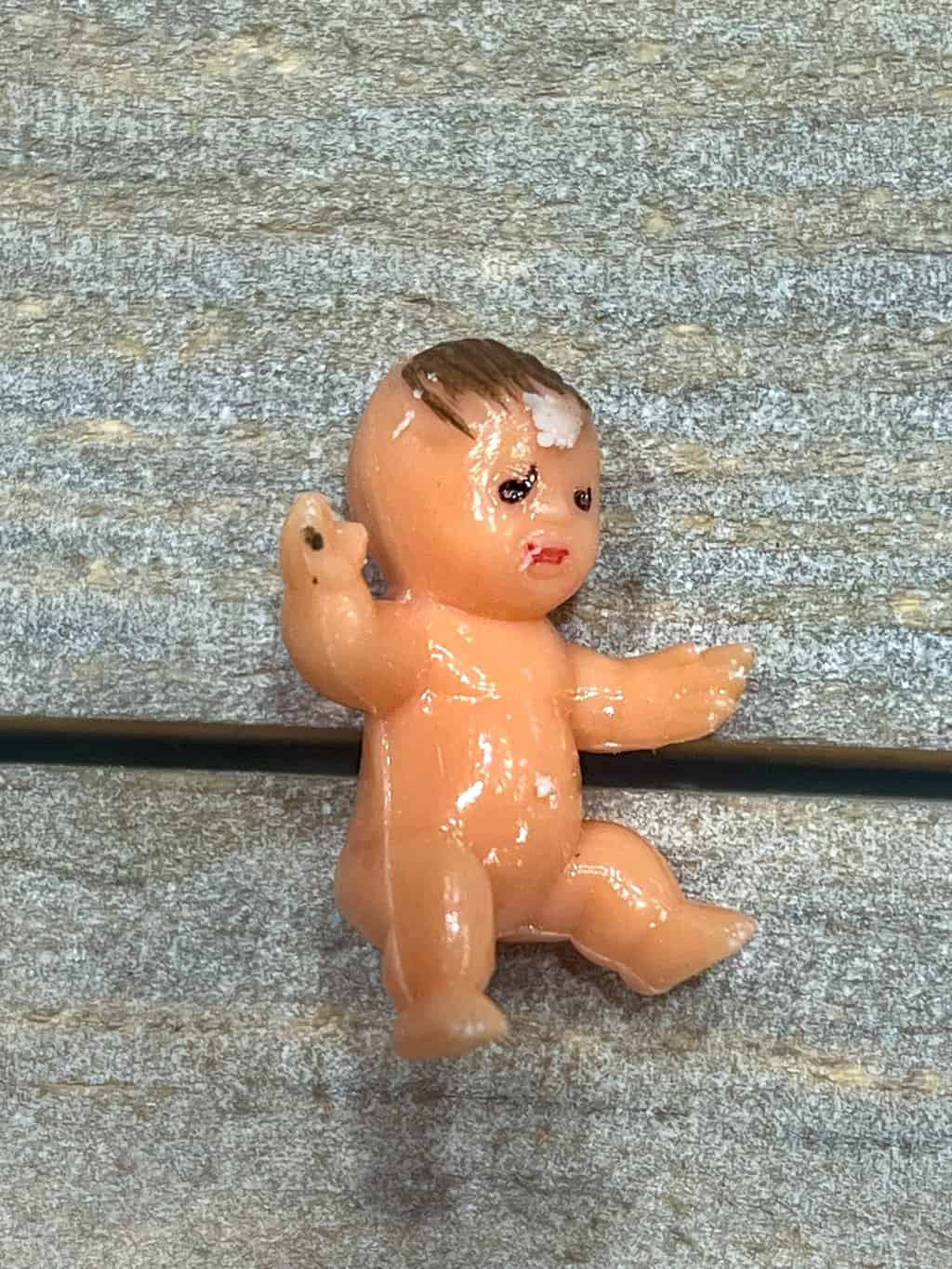 - Hide baby Jesus in the cake and try to remember where it is. Remind guests to be on the lookout for a small plastic object. I place the baby close to the bottom of the pasty where it’s easily concealed.