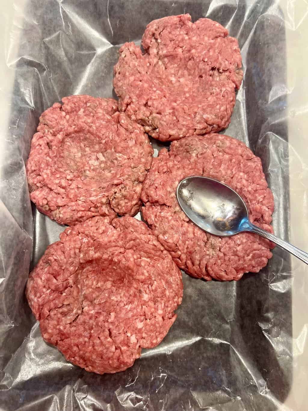 - Make a slight indentation in the center of each patty to prevent a bubble from forming.