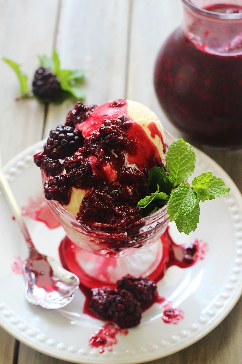 - Whole blackberries roasted with cinnamon brown sugar, bourbon and lemon slices and crushed after cooking. Use as a topping for ice cream, oatmeal, pancakes and waffles. Stir some into lemonade. Adjust the amount of sugar according to your taste and the natural sweetness of the berries. The sauce thickens up some after it's cooled.