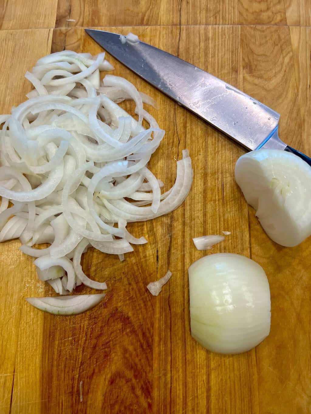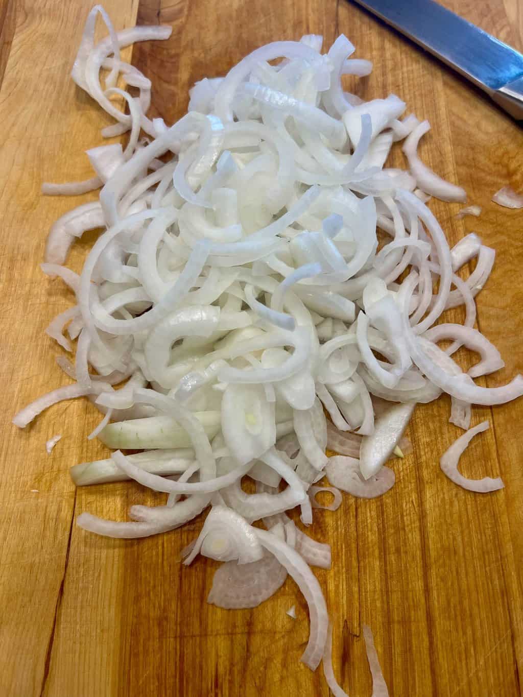 - 2 medium sweet onions peeled, cut in half and sliced thinly