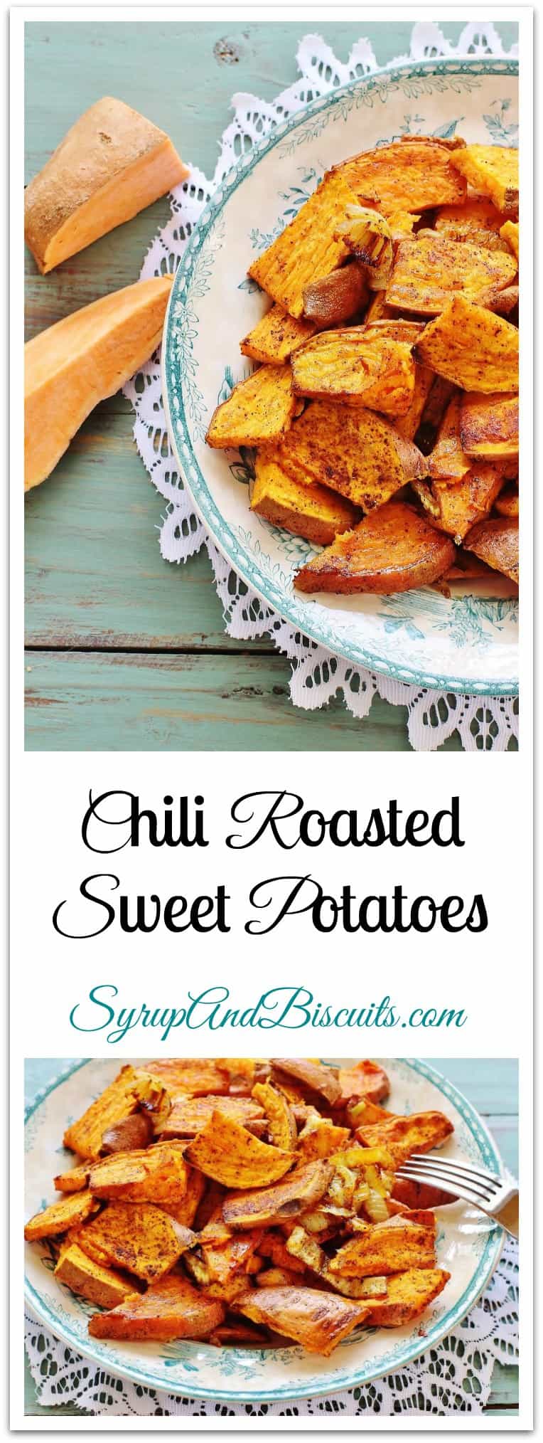 Chili Roasted Sweet Potatoes is the best of both worlds: sweet and savory. Sweet potatoes offer up sweetness and chili spices plus onions add a remarkable blend of savory flavors.