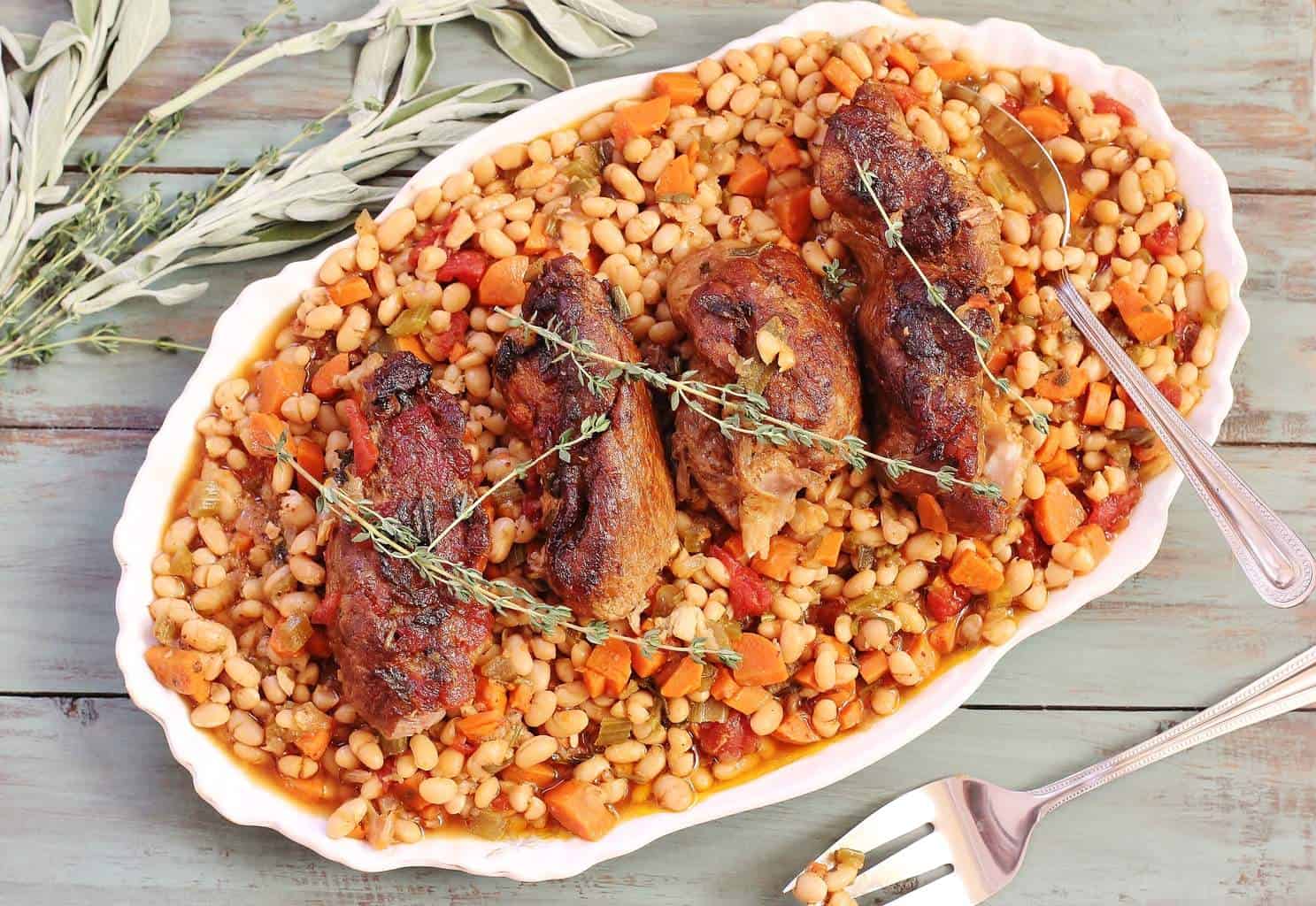 A one pot meal from start to finish. The leftover beans and vegetables make a wonderful soup by simply adding chicken stock and pureeing to desired consistency.