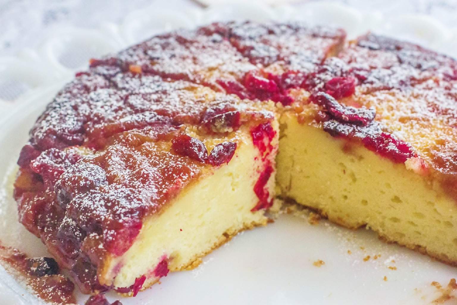 It surprised me that most of the cranberries sort of scooted around to the side of the cake but it certainly didn’t hurt the overall flavor this wonderful, easy-to-make cake.