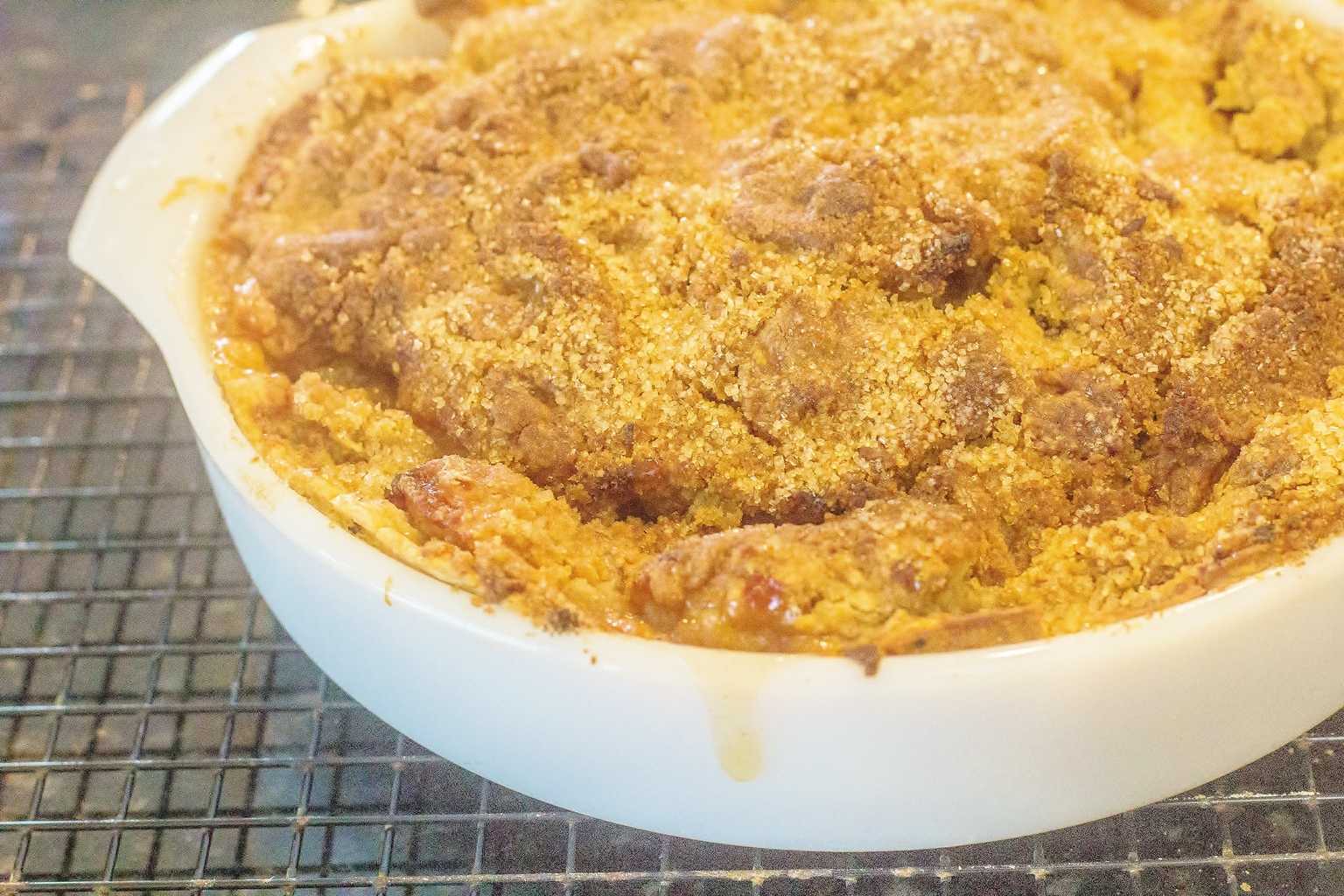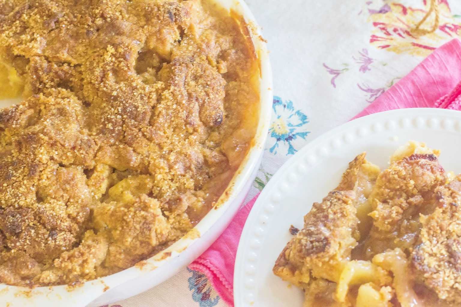 - Sprinkle crumb topping evenly over apple filling.