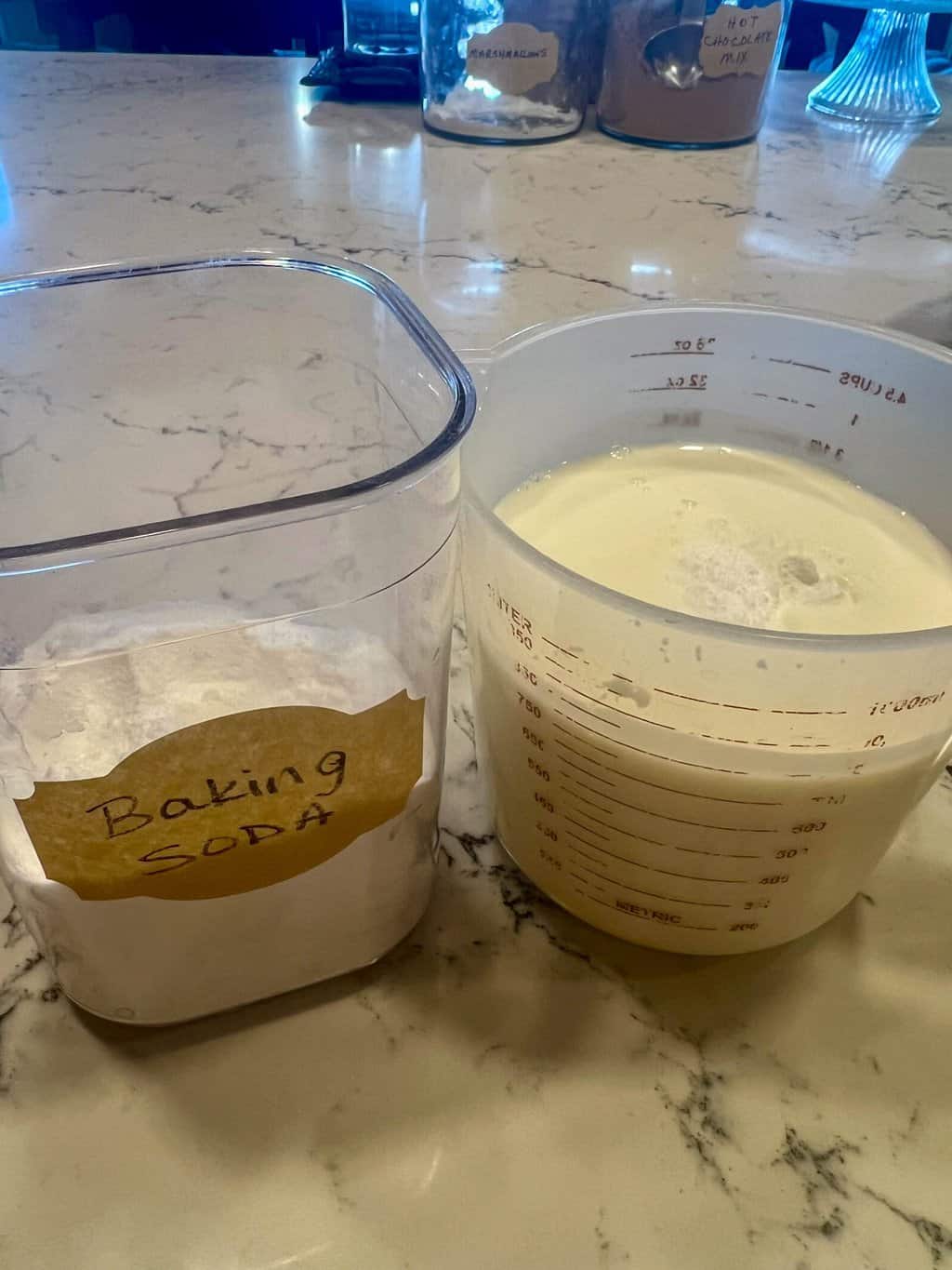 - Stir baking soda into buttermilk and set aside. If the mixture bubbles, the baking soda is still good. If it doesn’t bubble, you need to buy more.