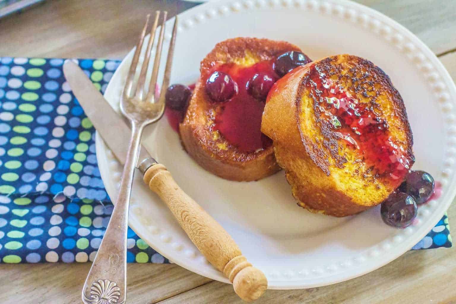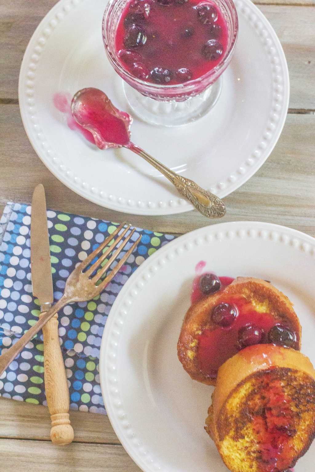 - Slice the bread and the night before cover it with custards and allow it to chill in the refrigerator overnight. In the morning, heat up your griddle and cook French toast and make a quick fresh blueberry orange sauce.