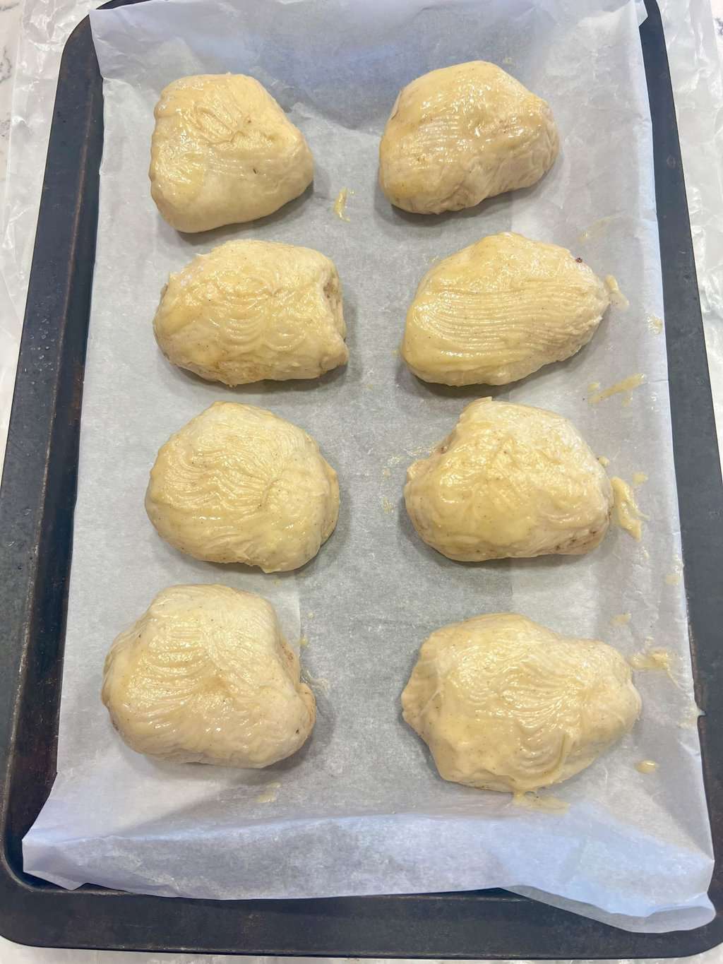 - Flip edge of biscuit over coated marshmallow. (represents Jesus’ body wrapped in burial cloth)