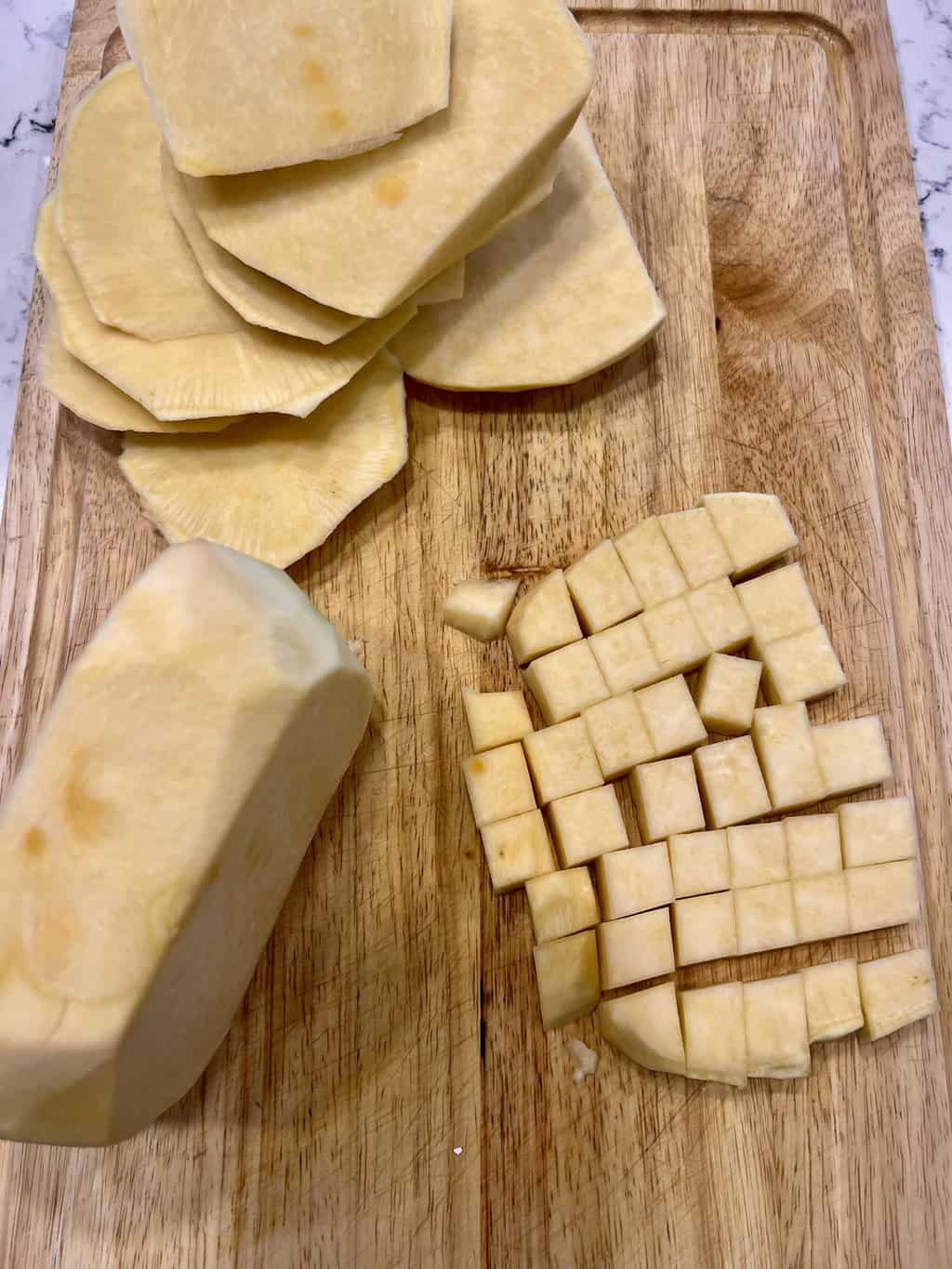 Dice 1 – 2 lg. rutabagas in bite sized pieces.