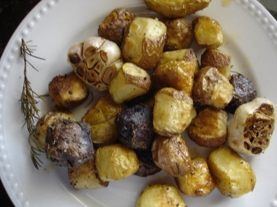 To serve, squeeze the pulp out of the garlic and eat along with your potatoes. The roasted garlic is amazingly mild and sweet.