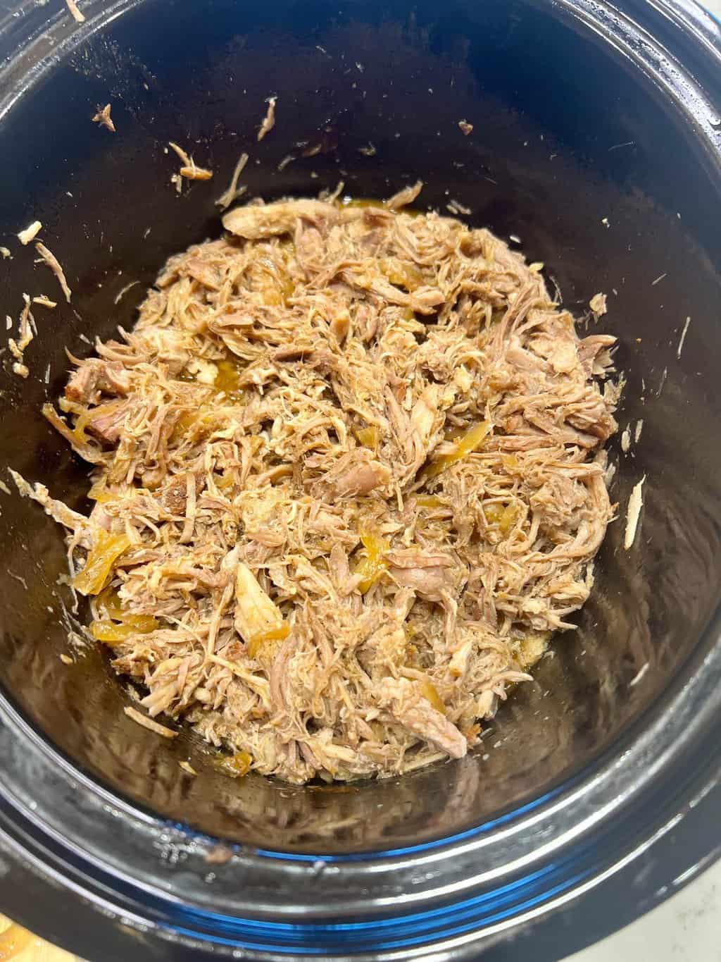 - Stir shredded pork back into the broth in the slow-cooker. Add additional broth to the shredded pork as needed.