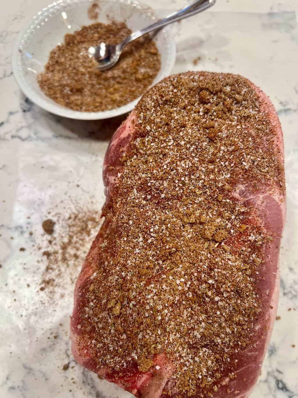- Sprinkle rub mix on pork roast.