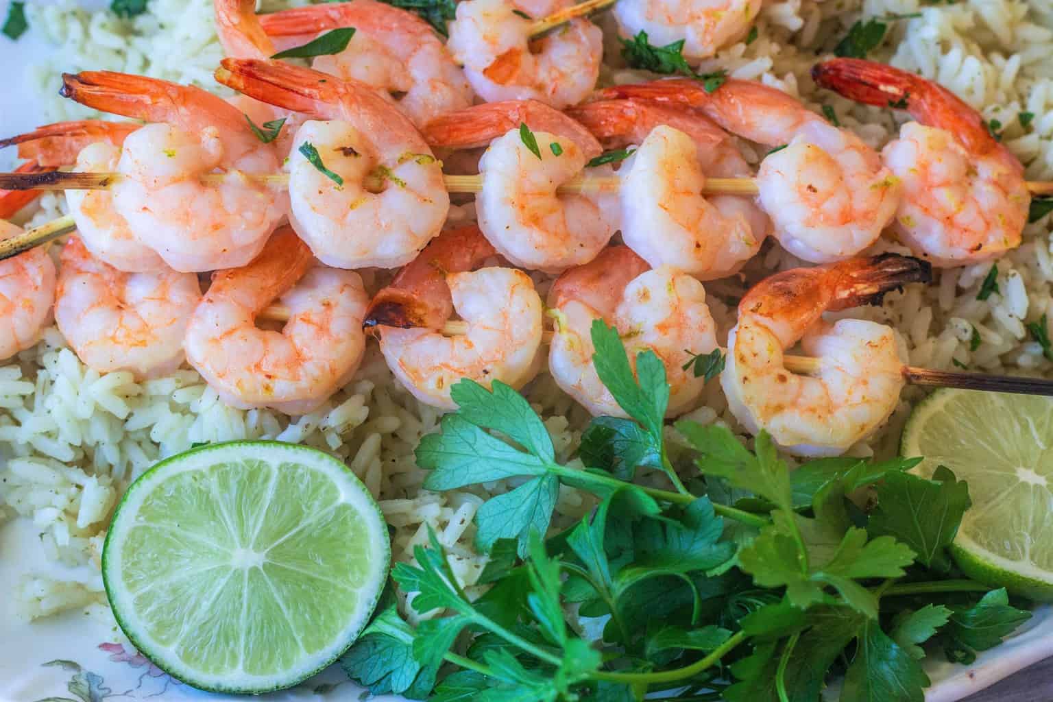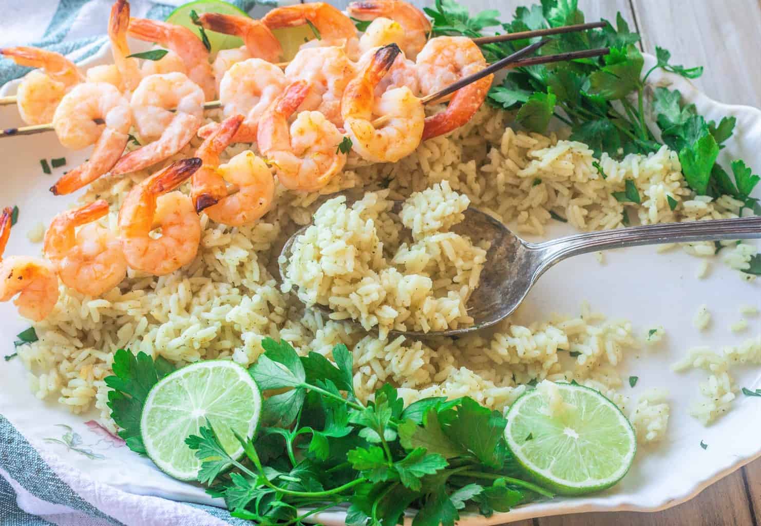Skewered Marinated Shrimp with Cilantro Lime Rice