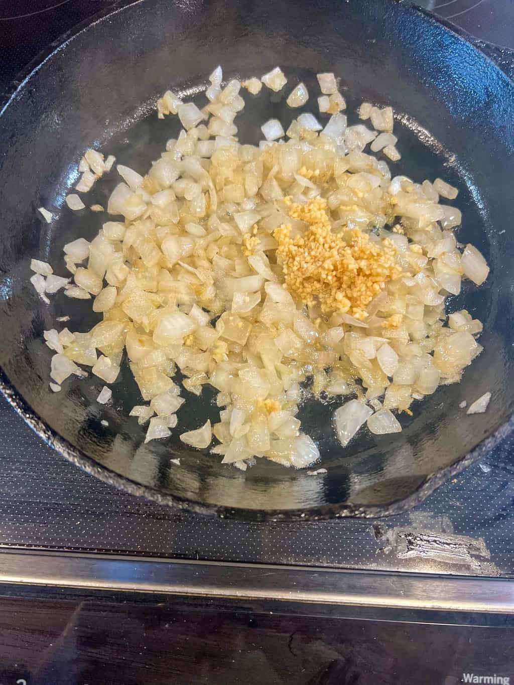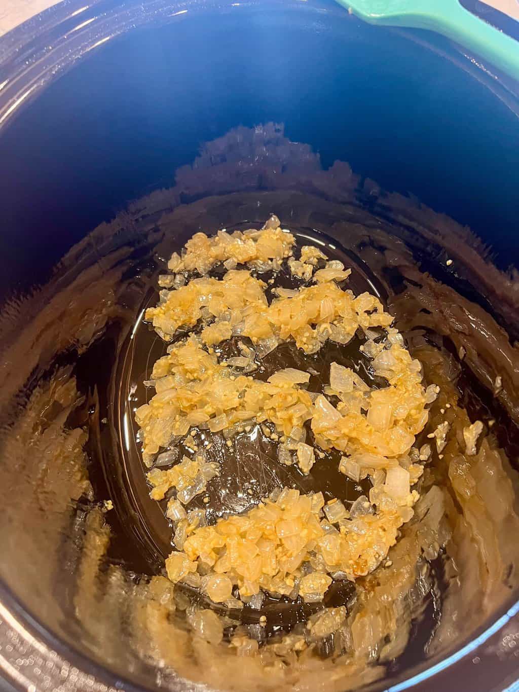 - Sauté for 4 to 5 minutes or until the onion is soft and starts browning. Add minced garlic and sauté an additional two minutes.
