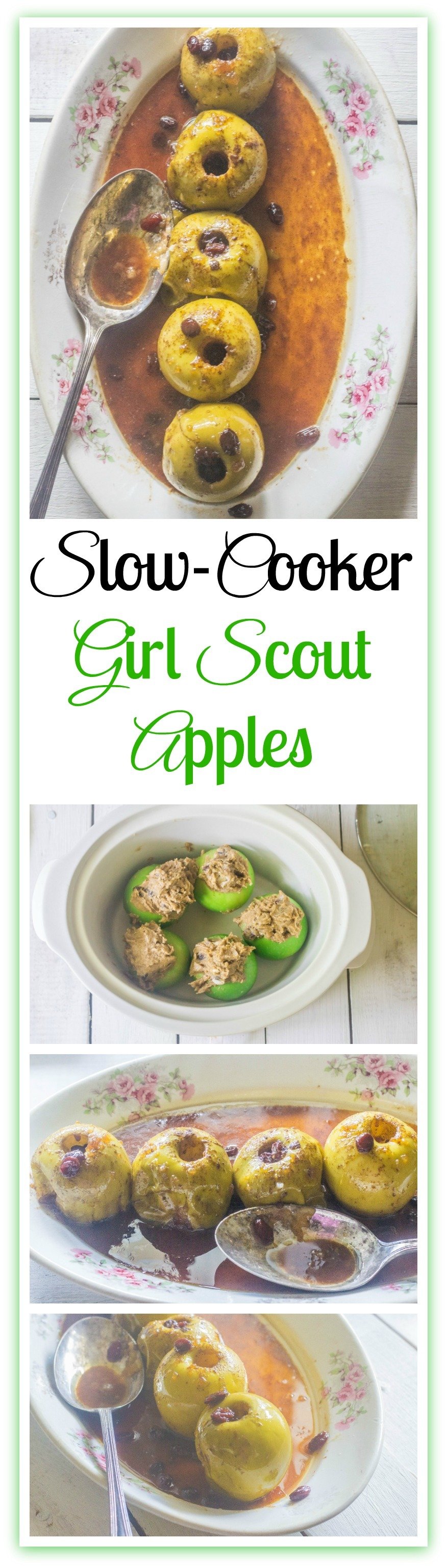 Slow-Cooker Girl Scout Baked Apples. Granny Smith apples, cored and filled with a mixture of butter, brown sugar, raisins and cinnamon and cooked in a slow cooker.A version of baked apples I learned in Girl Scouts.