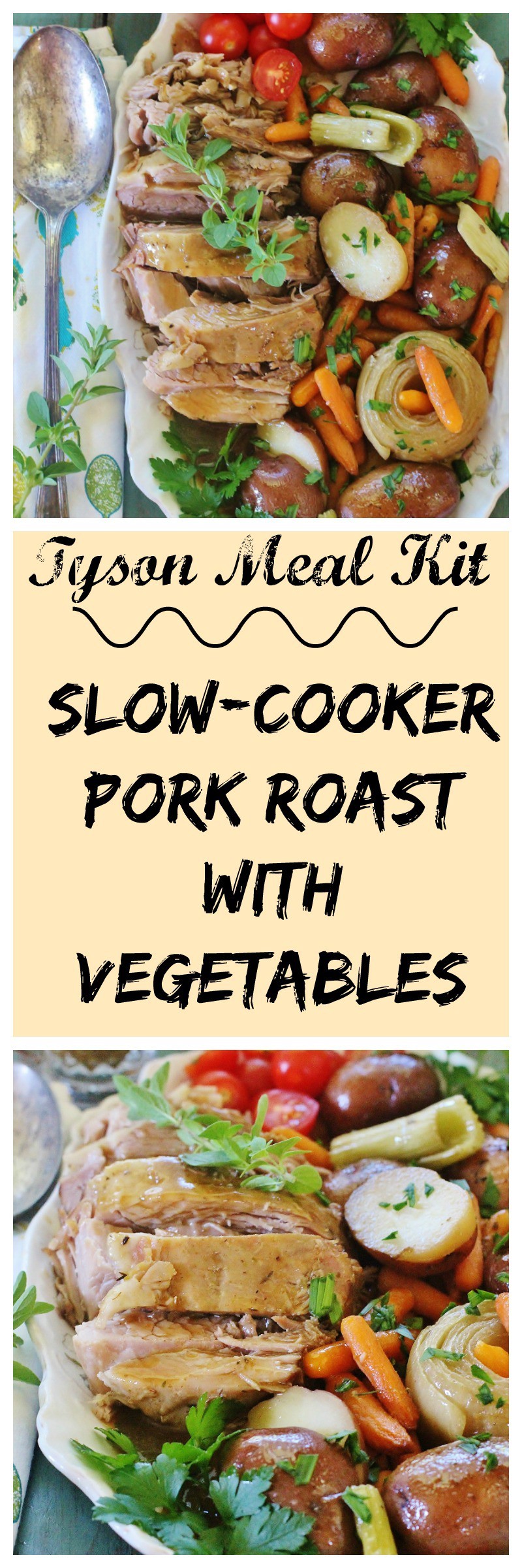 A slow-cooker meal fit my schedule. I could quickly assemble the ingredients in the slow-cooker, turn it on, forget about and continue with cookbook writing activities for the rest of the day. I found a Tyson Meal Kit for a Slow Cooker Pork Roast and Vegetables.