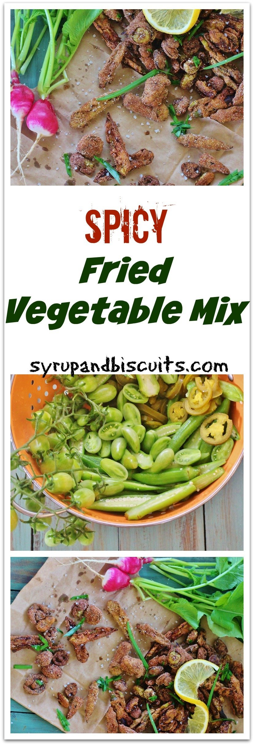 - Add 1/3 of the vegetable mix to a gallon plastic bag. Add just enough buttermilk or half and half (about one tablespoon) to coat the vegetables. Pour in 1/3 of the cornmeal mix. Shake the bag to evenly coat the vegetables.