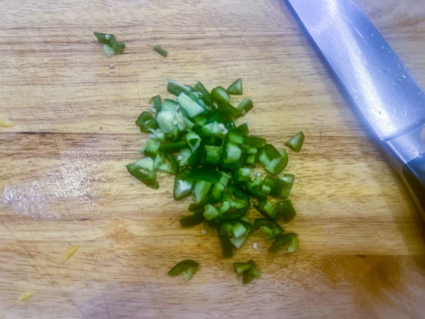 - Dice jalapeno pepper. If you don't wear gloves, be sure to wash your hands afterwards.