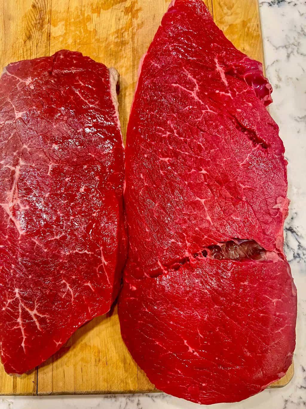 - Choose either top or bottom round steak.